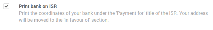 Nút in ISR chỉ xuất hiện, có một tài khoản ngân hàng được xác định trên hóa đơn. Bạn có thể sử dụng CH630900000025009798 làm số tài khoản ngân hàng và 010391391 làm tham chiếu CHF ISR.
