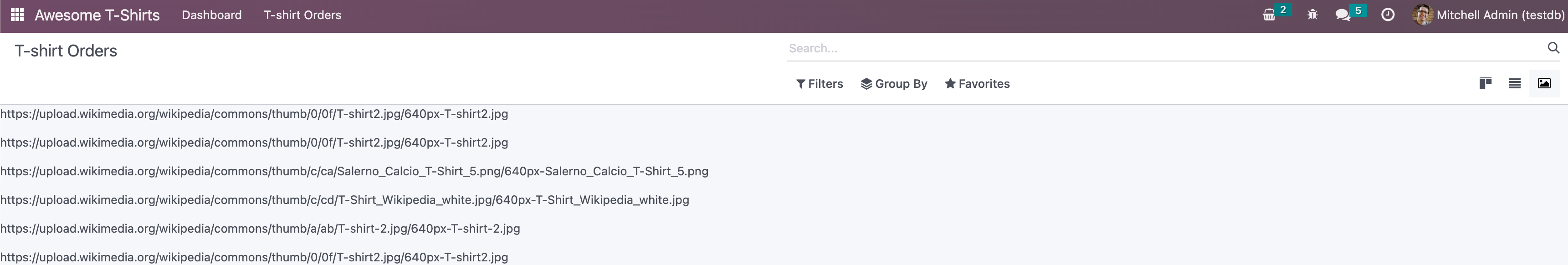 For this exercise, let’s assume that we want to create a gallery view, which is a view that lets us represent a set of records with an image field. In our Awesome Tshirt scenario, we would like to be able to see a set of t-shirts images.
